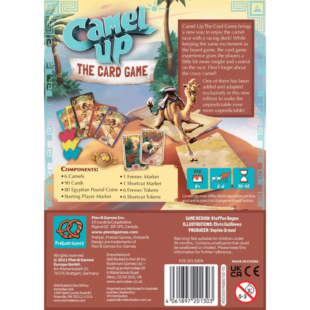 Camel Up The Card Game brings a new way to enjoy the camel race with a racing deck! While keeping the same excitement as the board game, the card game experience gives the players a little bit more insight and control on the race. Don’t forget about the crazy camel!