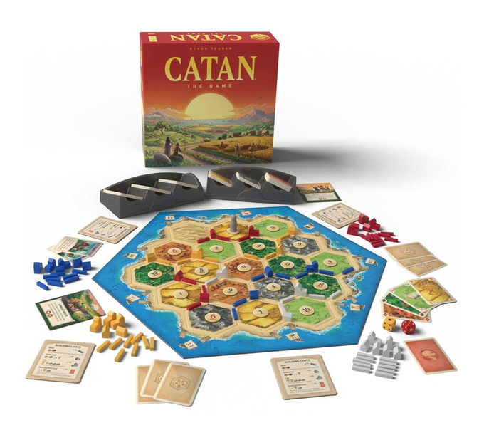 - EXPLORE THE ISLAND OF CATAN: Settle the uninhabited island of Catan by gathering resources, building infrastructure, and nurturing trade relationships.