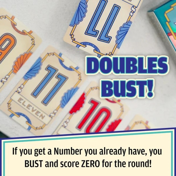 Are you the type of player to play it safe and bank points before you bust, or are you going to risk it all and go for the bonus points by flipping over seven in a row? Press your luck meets strategy in this addictive card game that’s sure to be the greatest card game you’ve ever played!
