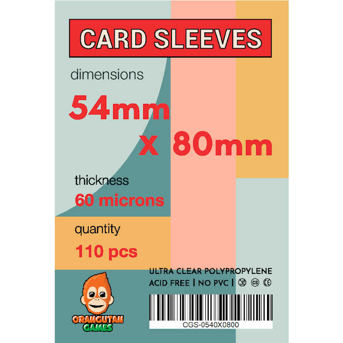 Orangutan Games’ Sleeves (OGS) provide incredible protection for all of your favorite Euro and American-style board games. Each sleeve is transparent on both sides to ensure perfect visibility.
