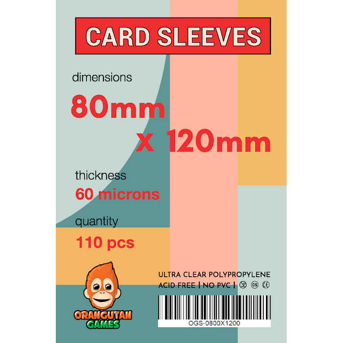 Orangutan Games’ Sleeves (OGS) provide incredible protection for all of your favorite Euro and American-style board games. Each sleeve is transparent on both sides to ensure perfect visibility.