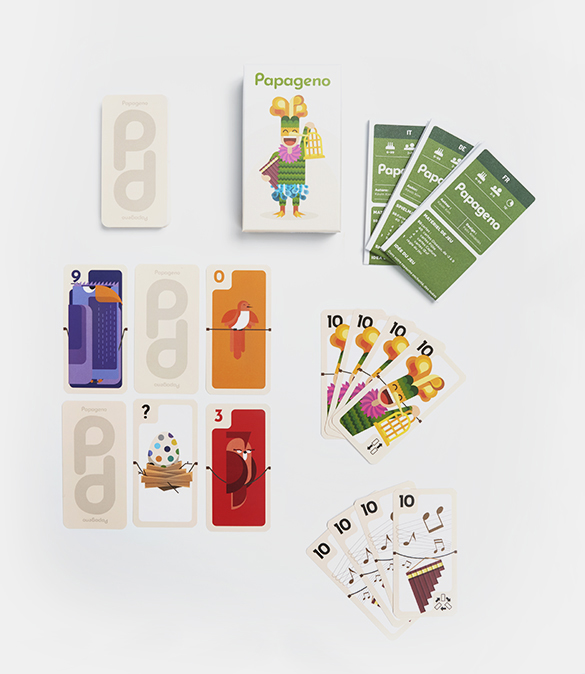 In your enchanted kingdom, a flock of colorful birds is flying around. To impress the Queen, will you be able to attract the best specimen to land on your wire? Pick them carefully to score fewer points than the other bird catchers and beware, the biggest birds might cost you victory. In Papageno, all the players will collect bird cards, exchange bigger birds for smaller ones – or vice versa – and create pairs in order to find the perfect balance on their wire. Papageno, Mozart‘s famous bird catcher, can help attract birds in your garden… or mess with all the players‘ games!