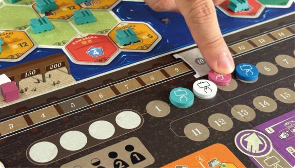 In this phase, players will decide which city to place their station and build out their railway. The potential length of the railway you can build will depend on the city you choose and which terrain you build through. The best places to build will be those in a good location for gaining resources and that allow for building far-reaching railways. If you end up being last in turn order, you risk the prime locations getting snatche up by other players.