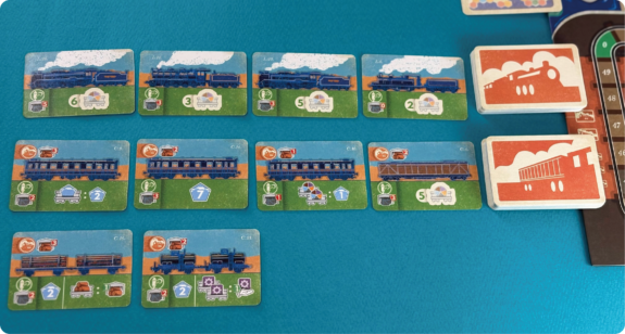 In this phase, players will take turns purchasing Locomotive and Carriage cards. It is very important to optimize buying the best cards based on the cost in coal to activate them and how many resources they can produce during the Operation Phase.