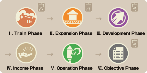 Each round is comprised of 6 phases, 4 of which also feature an auction step.