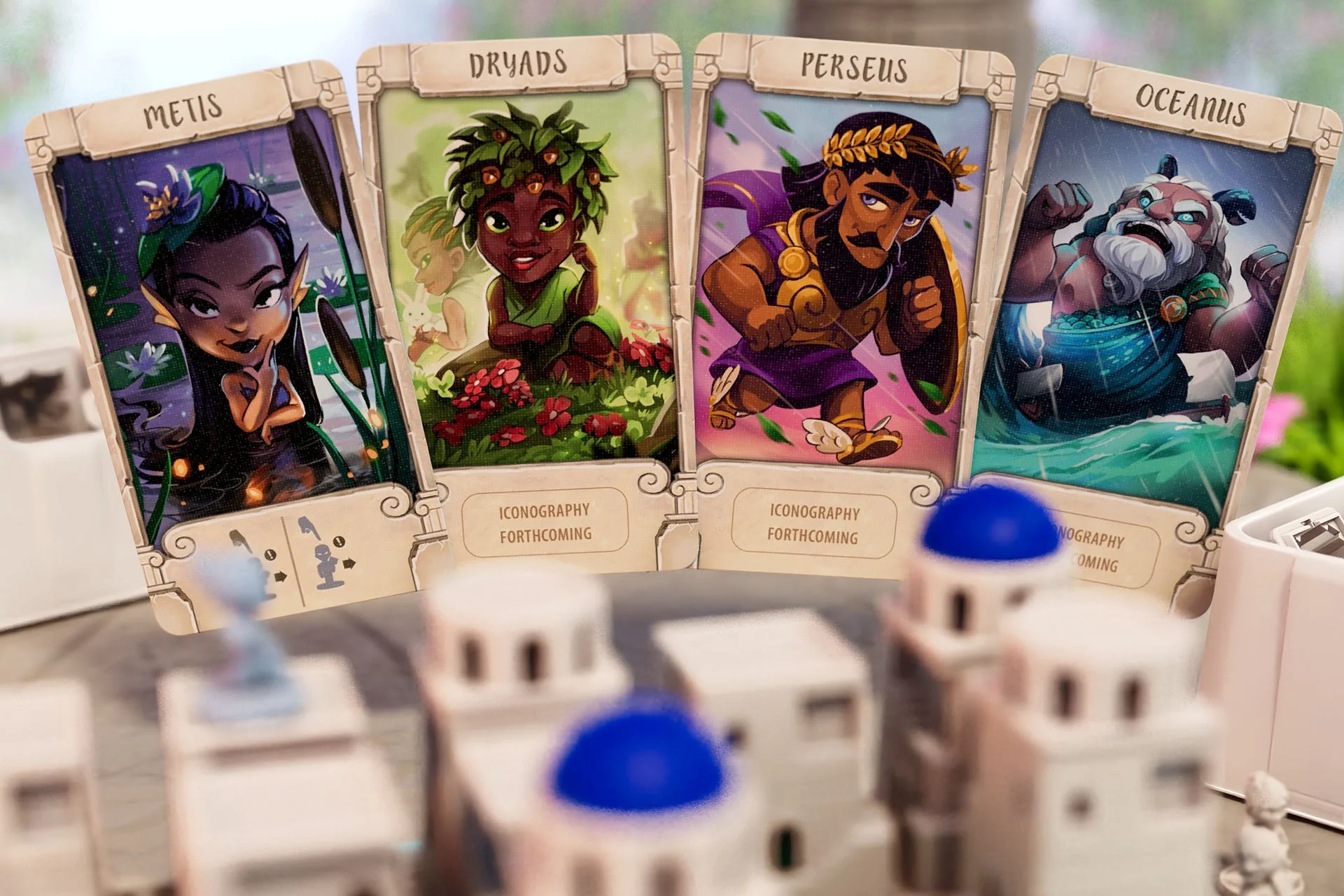 Variable player powers – Santorini features variable player powers layered over an otherwise abstract game, with many thematic god and hero powers that fundamentally change the way the game is played.