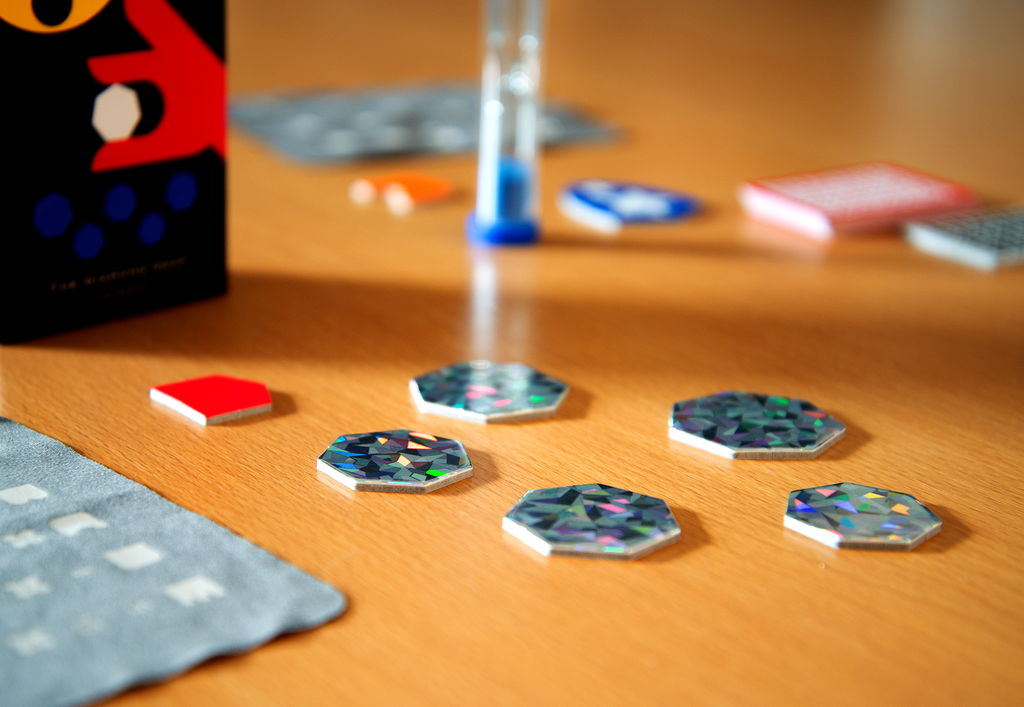 It’s a new kind of game played with brilliant diamond chips, alongside other gorgeous components such as cards, player chips, an hourglass and cloths for concealing.
