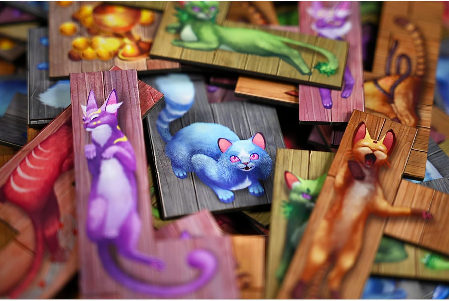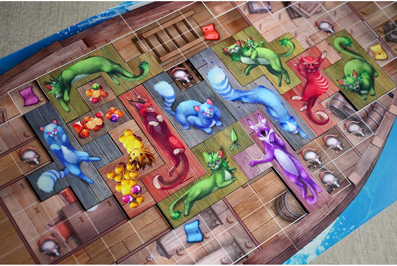 Each lesson you collect gives you another personal way of scoring points, and 38 unique lessons are available. Complete lessons, fill your boat, and keep cat families together to score points, and the player with the most points after five rounds wins.