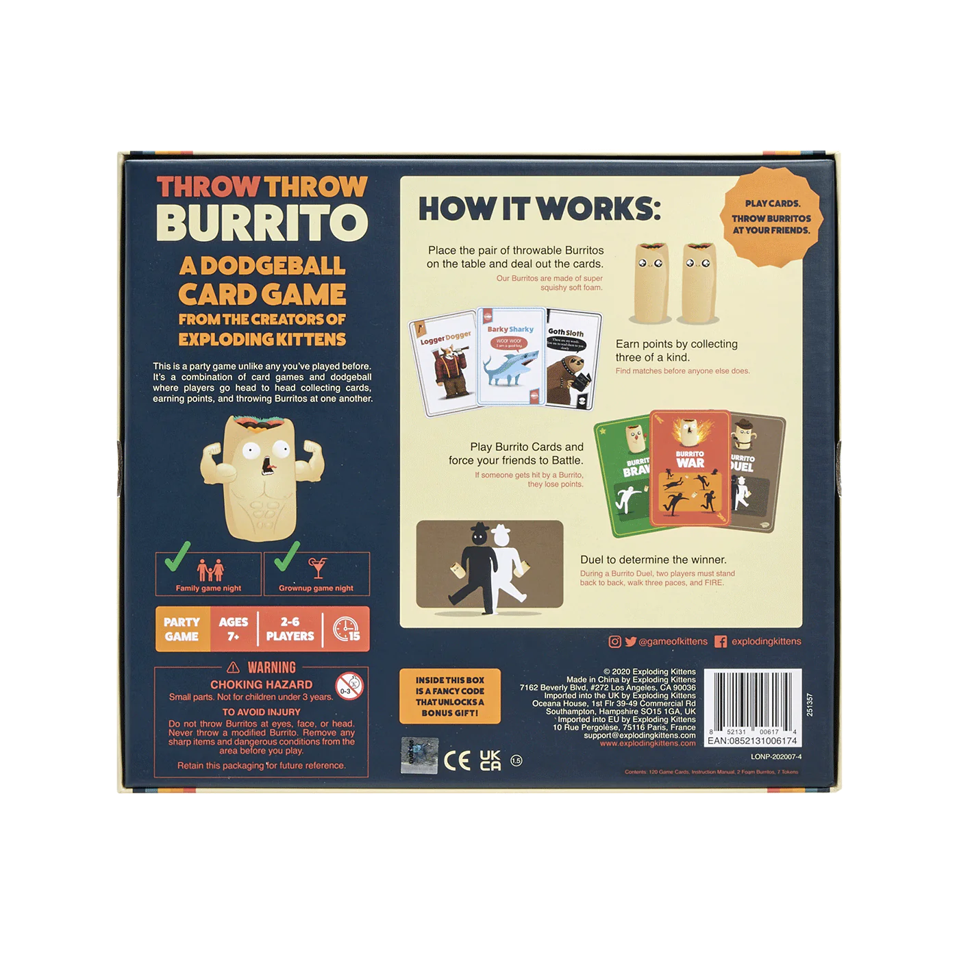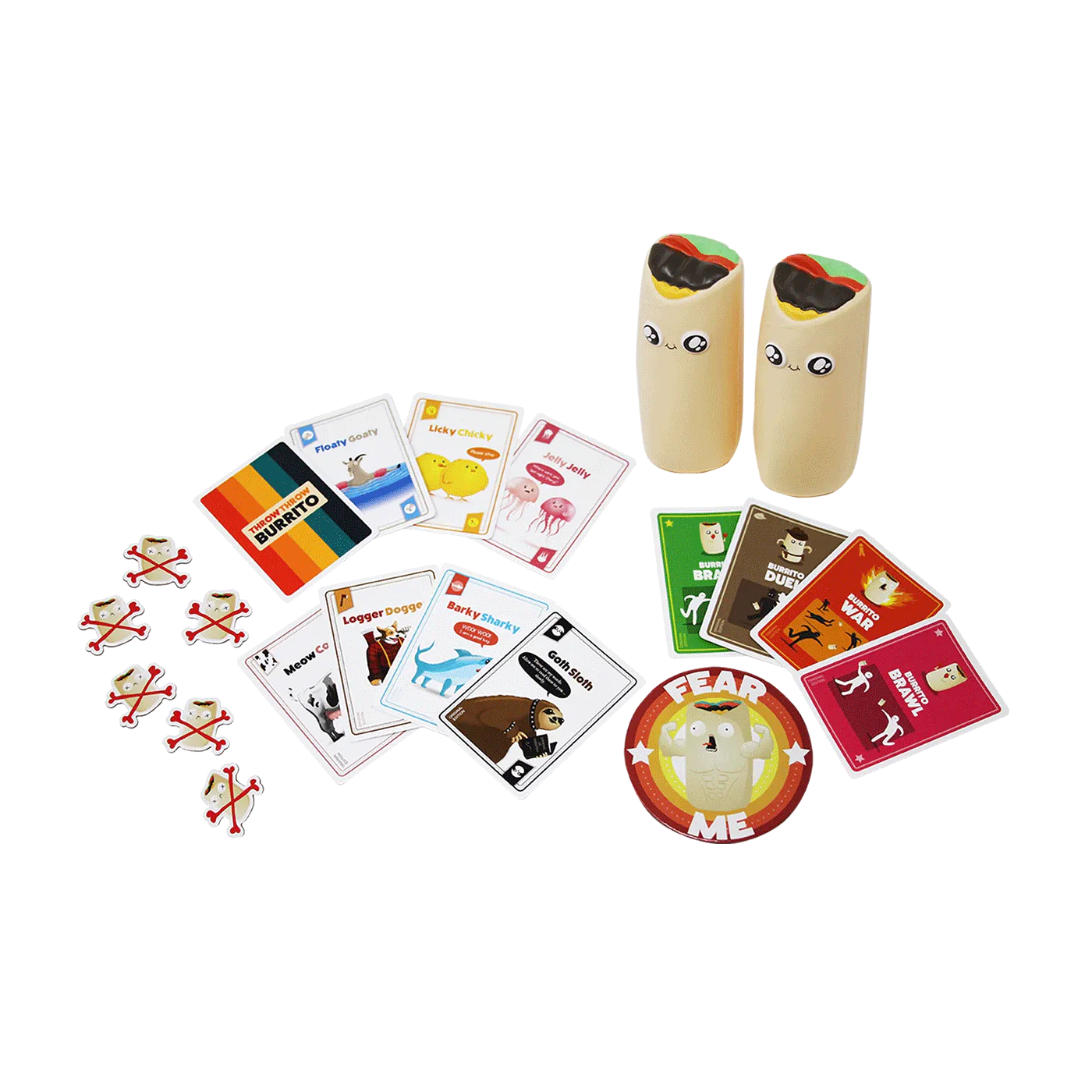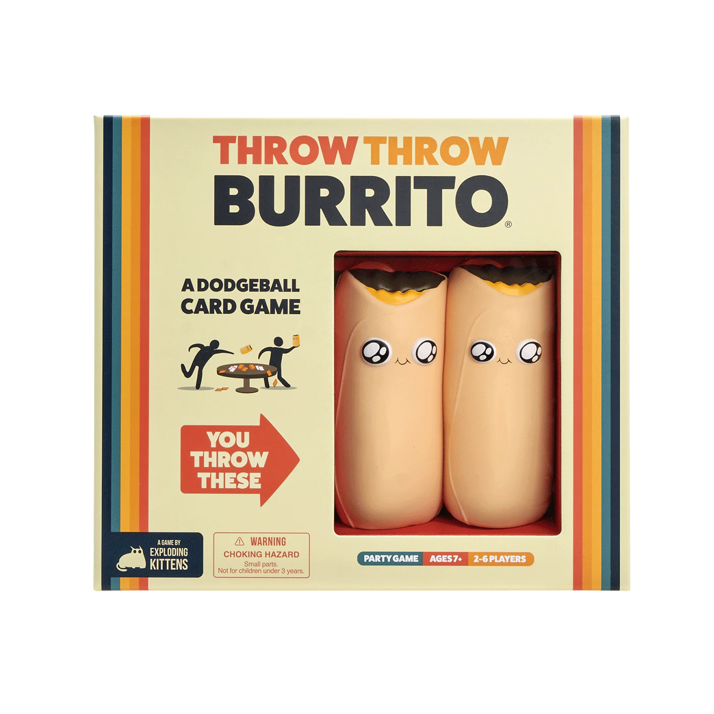 Clear some space and put away antiques because you’ve never played a party game quite like this. Throw Throw Burrito comes with: