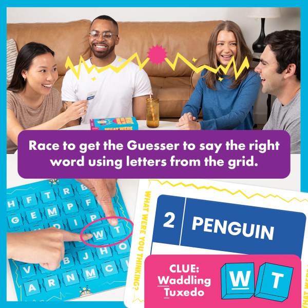 Can you give the perfect clue before anyone else? What Were You Thinking? is a guessing game for horrible mind readers, and it’s as fun to watch as it is to play.